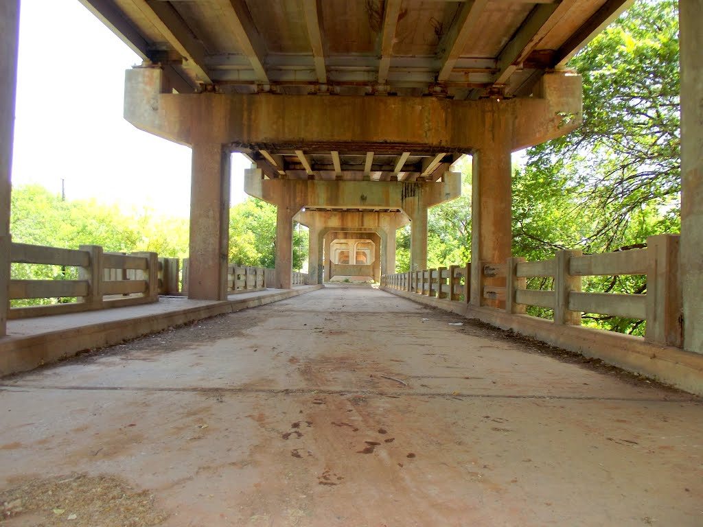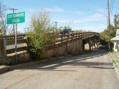 “On the west side of the historic downtown area of Guthrie, this two-level viaduct takes W. Noble Avenue (State Highway 33) across the often-raging Cottonwood Creek.